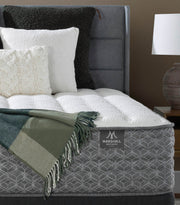 The Marshall Mattress exemplifies craftsmanship at its finest, handcrafted with attention to every detail using a blend of the finest natural and modern materials. Wrapped in an ultra-conforming knit fabric, this mattress integrates wool, eucalyptus, and copper fibers, which not only enhance breathability but also provide a naturally cool and hygienic sleeping surface. The luxurious quilting includes super soft foam, firm high-density foam, and a True-Stretch cotton backing for added comfort and durability.